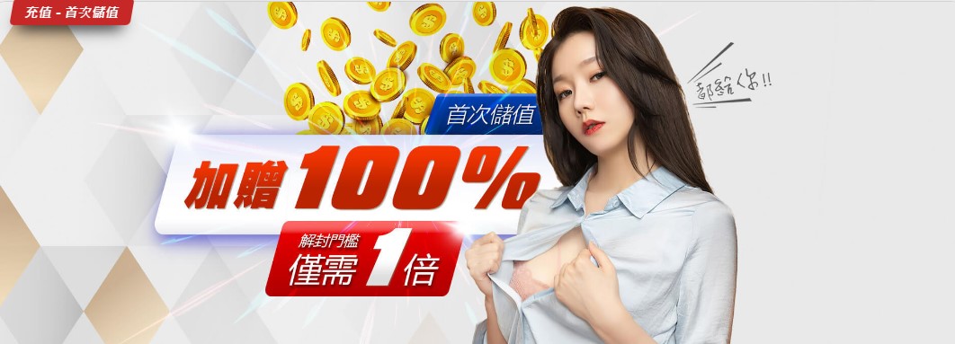 首次儲值加贈100%,解封門檻僅需1倍